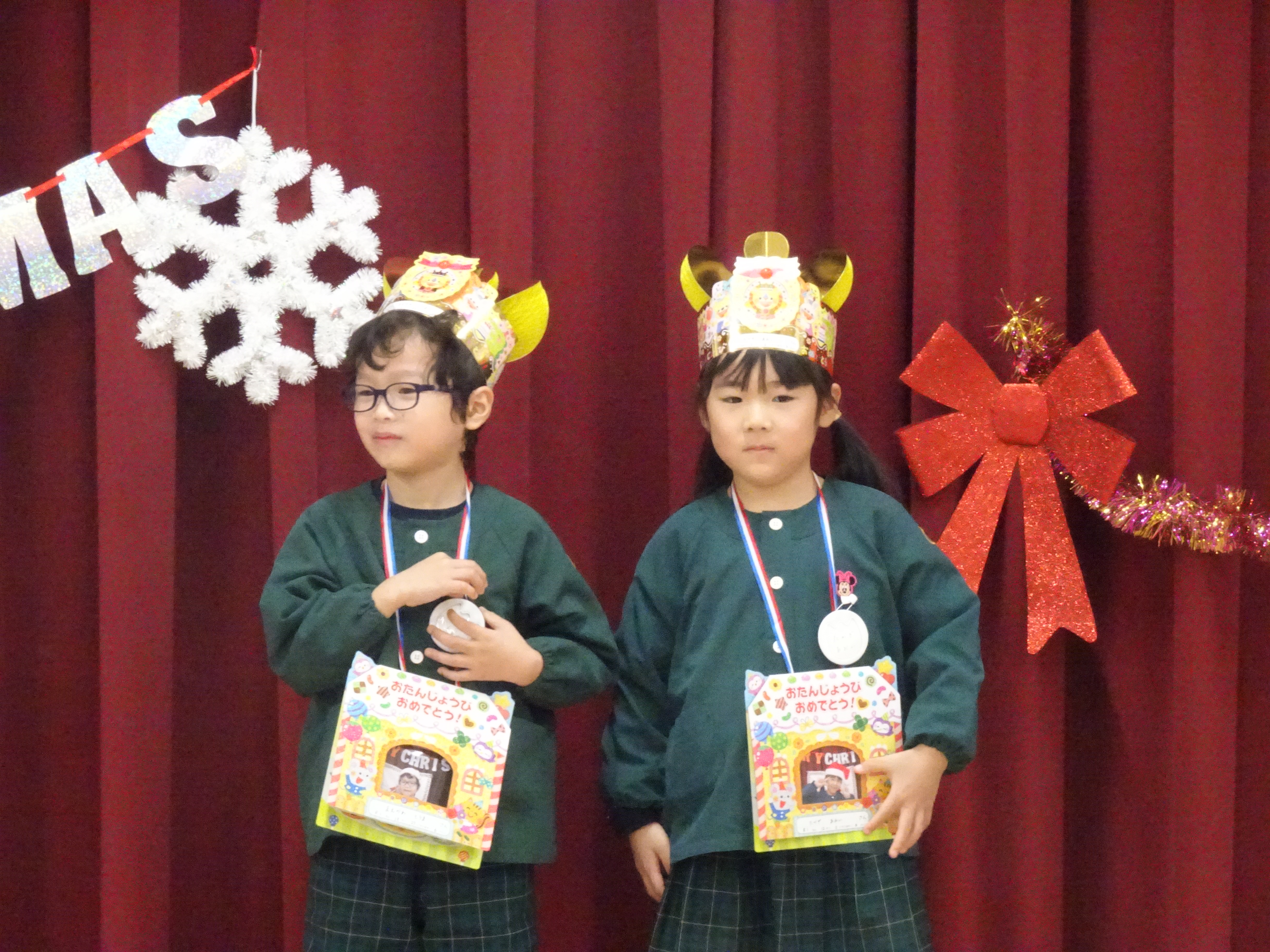 12月誕生会・クリスマス会 12月19日にクリスマス誕生会がありました🎄 たくさんのお友達の前でしたが、上手にインタビューに答えてくれました。 「あわてんぼうのサンタクロース」や「赤鼻のトナカイ」の歌を元気いっぱい歌いました。 鈴の音を鳴らしながら、サンタさんもプレゼントを持ってやって来ましたよ�🎁 みんなの嬉しい声や笑顔がたくさんな素敵な日になりました。